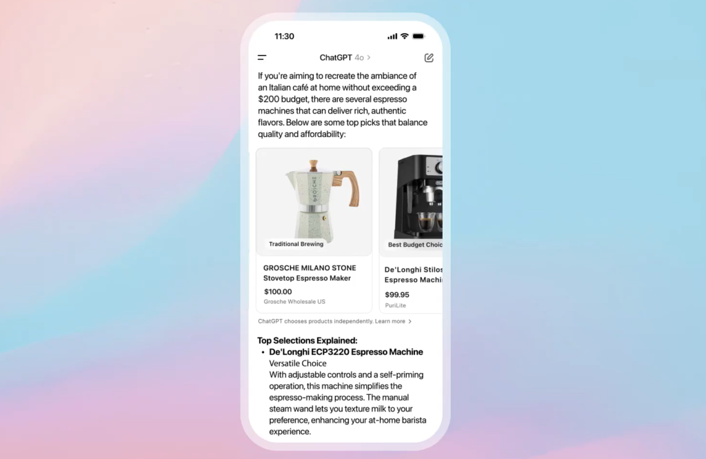 OpenAIはチャット検索に商品推薦や画像、レビュー、購入リンクを組み込んだアップデートを公開し、ユーザーは自然言語で細かな条件を指定してショッピング調査が可能になりました。商品情報は広告に左右されず独立して提供されると強調されています。