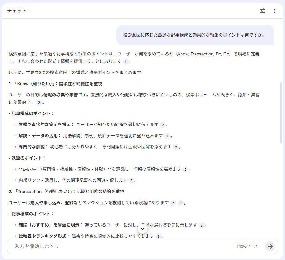 まず重要なのは、チャットがインターネット検索ではなく、アップロードしたソースのみを参照して応答する設計である点を正しく理解することです。この特性により、回答の根拠が常に社内資料や指定文書に限定され、情報のブレや誤解釈を防げます。そのため、チャットを使う前段階として、関連資料をできるだけ網羅的かつ整理された形でノートブックに投入しておくことが、精度を高める第一歩になります。