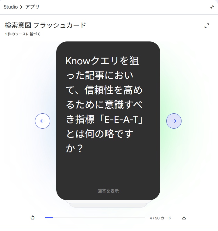 研修・人材育成の効率化という分野において、NotebookLMは教育コンテンツの作成負荷を軽減しつつ、学習効果を高める実務的なツールとして活用されています。社内研修資料やマニュアル、教育用スライドなどをアップロードすることで、その内容を基にしたFAQや理解度確認用のクイズ、反復学習に適したフラッシュカードを自動的に生成できる点が大きな特長です。これにより、これまで担当者が個別に作成していた教材や確認テストの準備時間を大幅に削減することが可能になります。