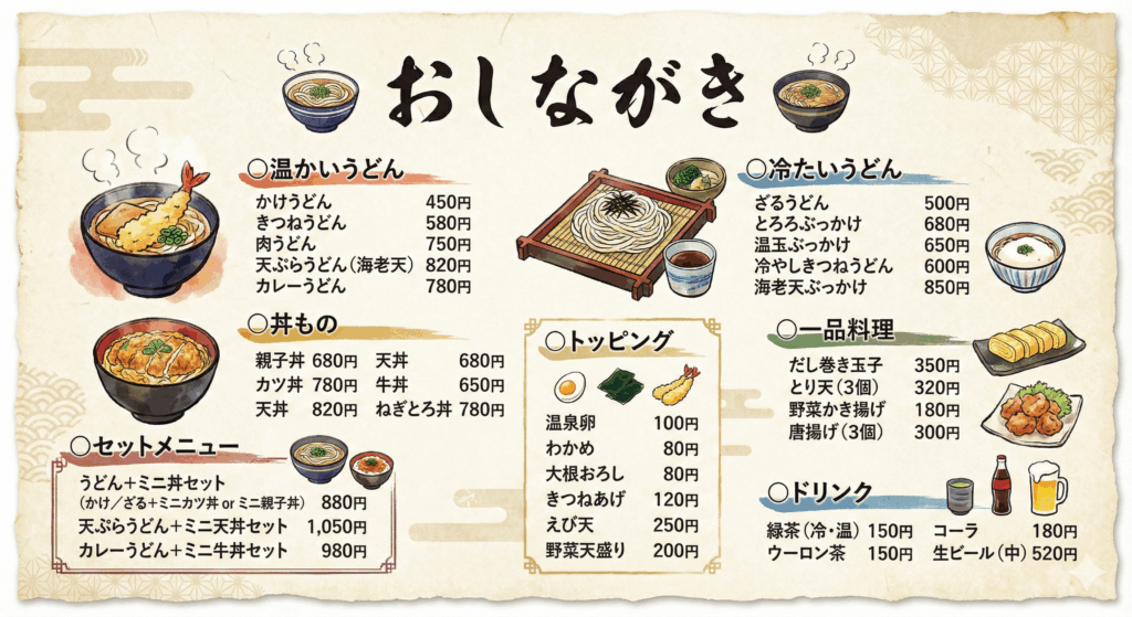 イラスト付きのメニュー表や、丁寧に整理されたスライド資料も、生成AIで瞬時に作成。デザインワークが苦手な人や、資料整理に時間がかかっている人でも、生成AIを活用すれば一気に課題をクリアできます。